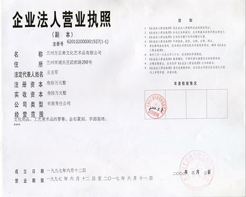 1.兰州市书法考级基地 承办单位:兰州方正斋文化艺术品有限公司